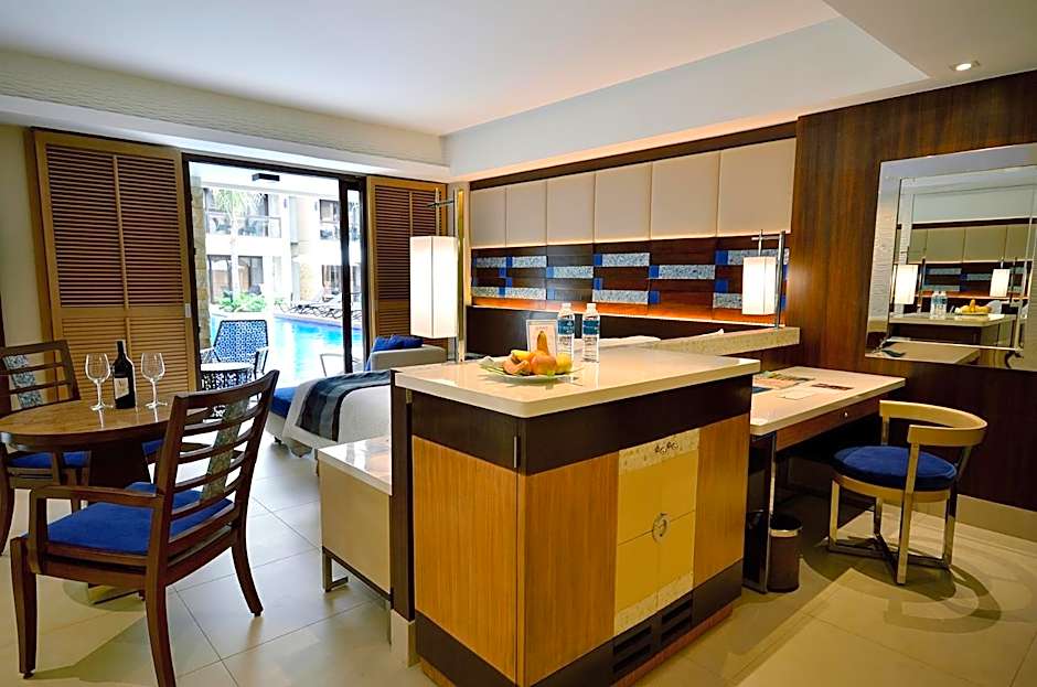 · Featuring direct access to the pool via a veranda with outdoor furniture, this room is air-conditioned and is equipped with a flat-screen TV with cable channels, a safety deposit box, and free WiFi access. Room is designed for 2 adults but can accommodate maximum occupancy of 3 adults. However an extra person charge shall be paid directly to the resort, otherwise check-in will not be allowed.